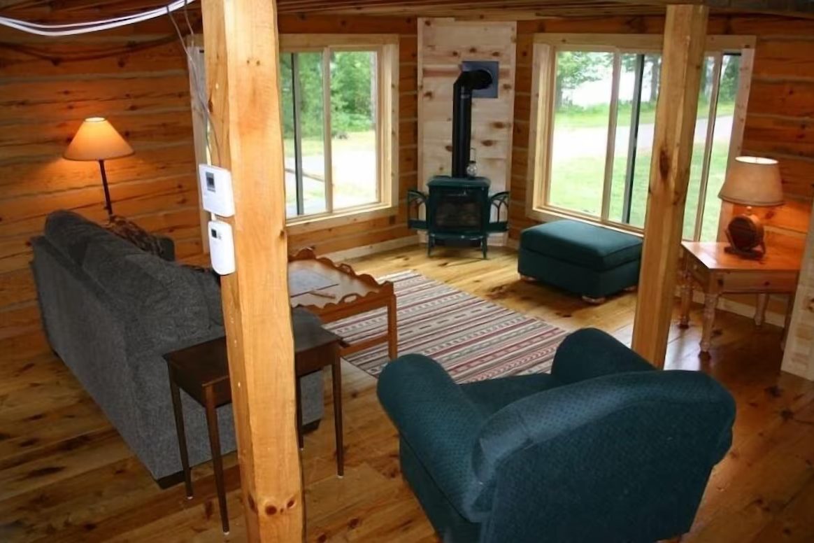 Welcome to the Lumberjack Village log cabins!! We have 2 cabins side by side which is perfect for family and friend getaway to our northwoods. Please check out VRBO 828159 about how to book both this cabin as well as the other one for larger groups who want to be next to each other. This is a family type atmosphere so we have to insist on NO PARTYING or loud music. This 1200 square foot timber frame cabin has all wood-knotty pine interiors with wood floors throughout. Bedrooms have custom made log beds with new mattresses. Kitchen appliances are brand new Kenmore brand. You will have your own private dock, fire pit and firewood and canoe!