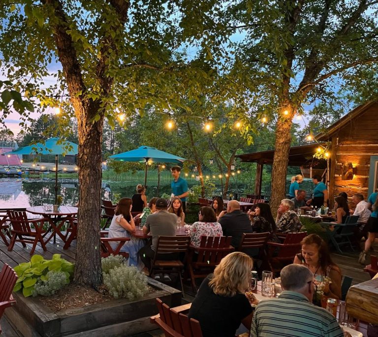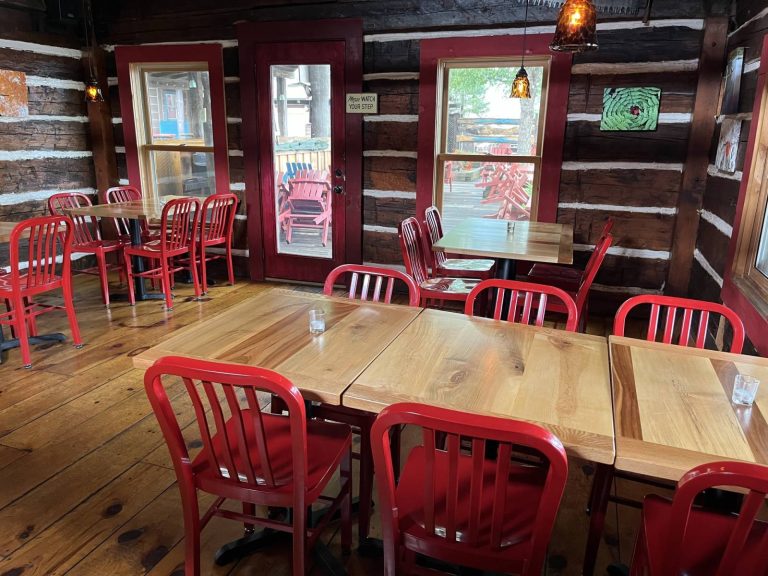 Always features fresh ingredients. Dine on the lakeside deck or in the historic cabin.